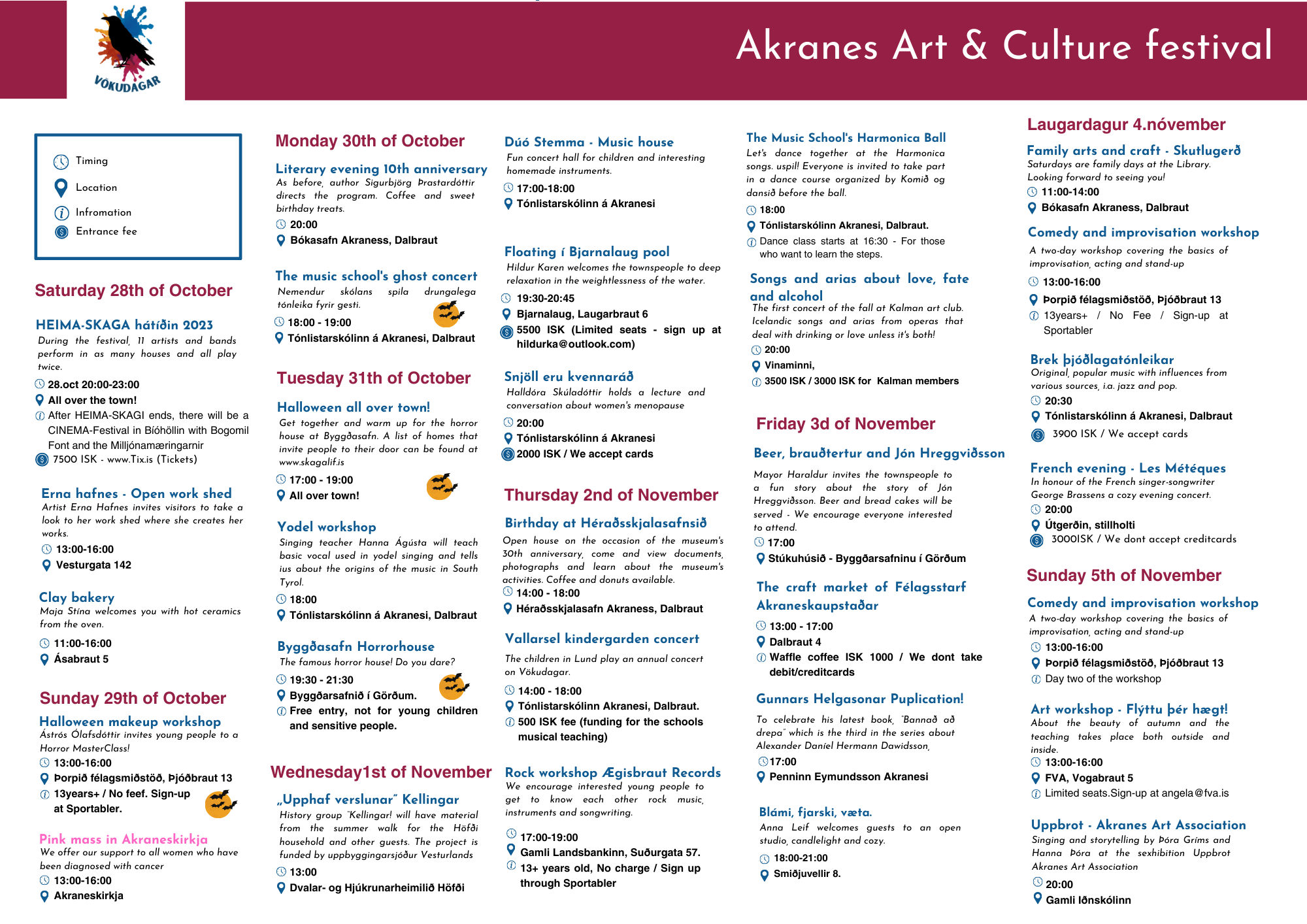 Art and culture festival Vökudagar will be held 26th of October until 5th of November this year.